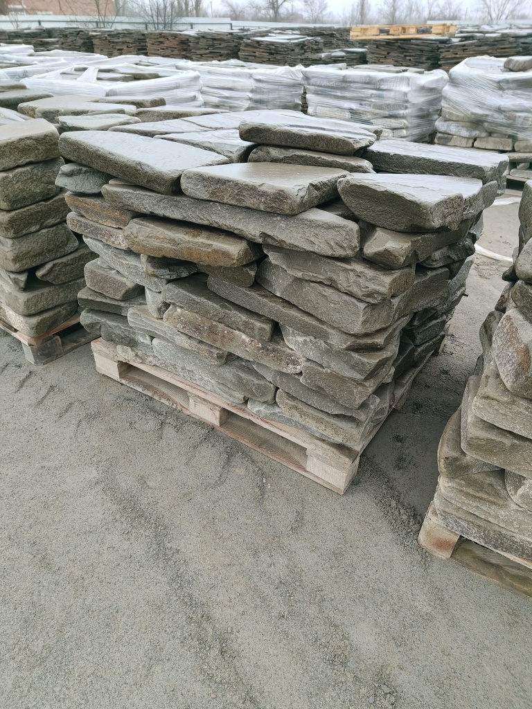 Вне всяких сомнений, если Вам нужно небольшое количество камня – 1-2-3 поддона, и плитняк Вам нужен в ближайшее время, т.к. строительная бригада уже готова приступить к работе с камнем – лучшим выходом будет покупка плитняка на ближайшем строительном рынке.