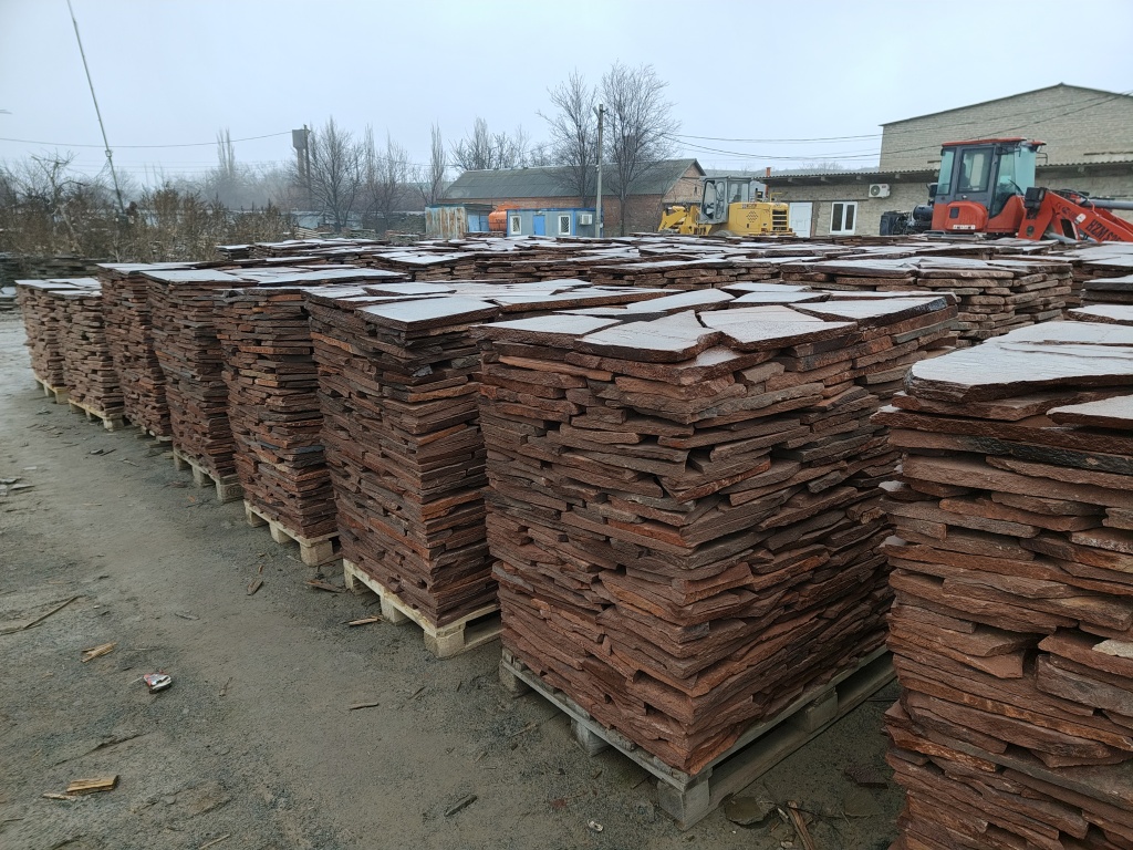 Плитняк песчаник красный для облицовки цоколя, отмостки 20-25 мм